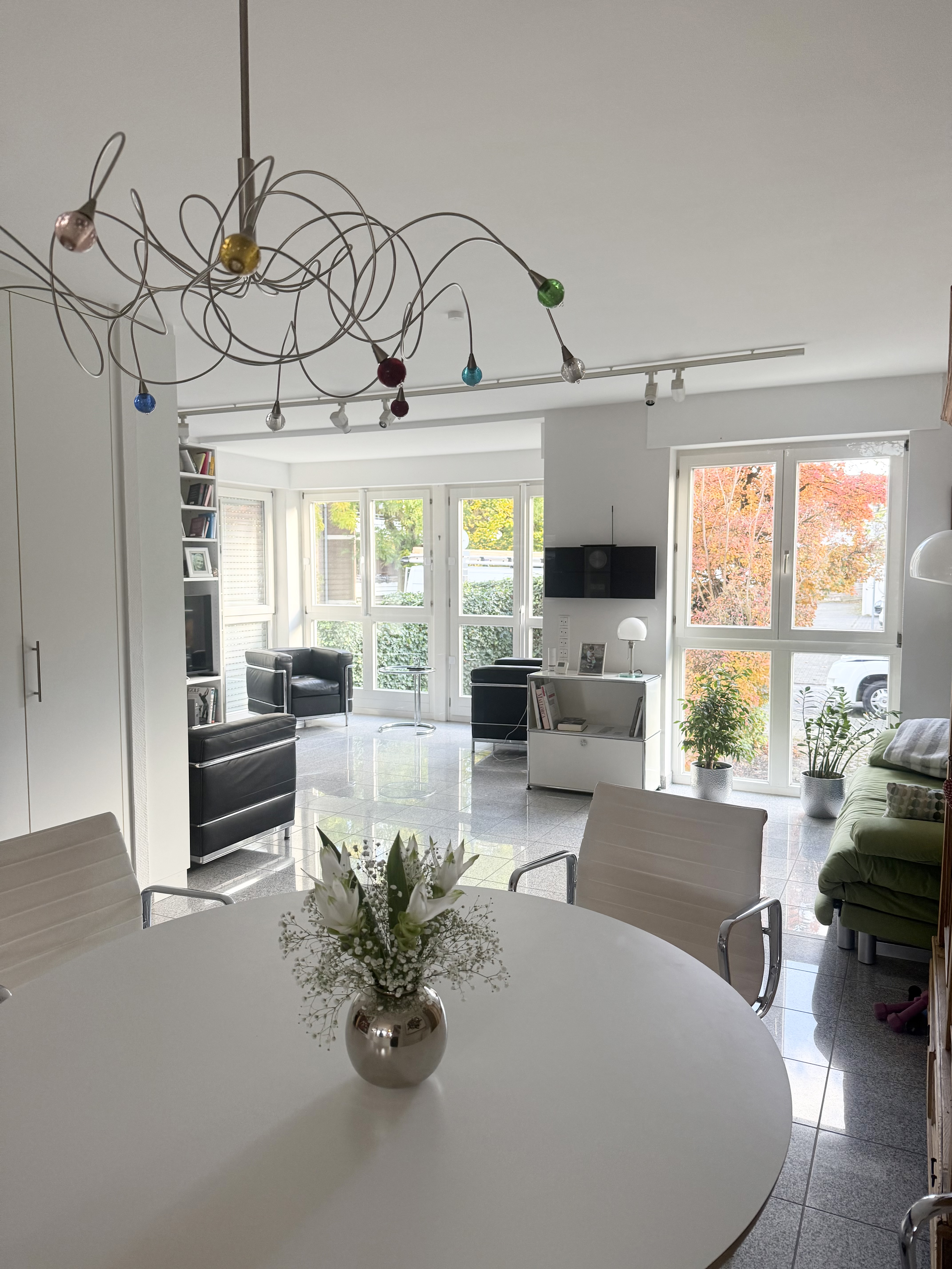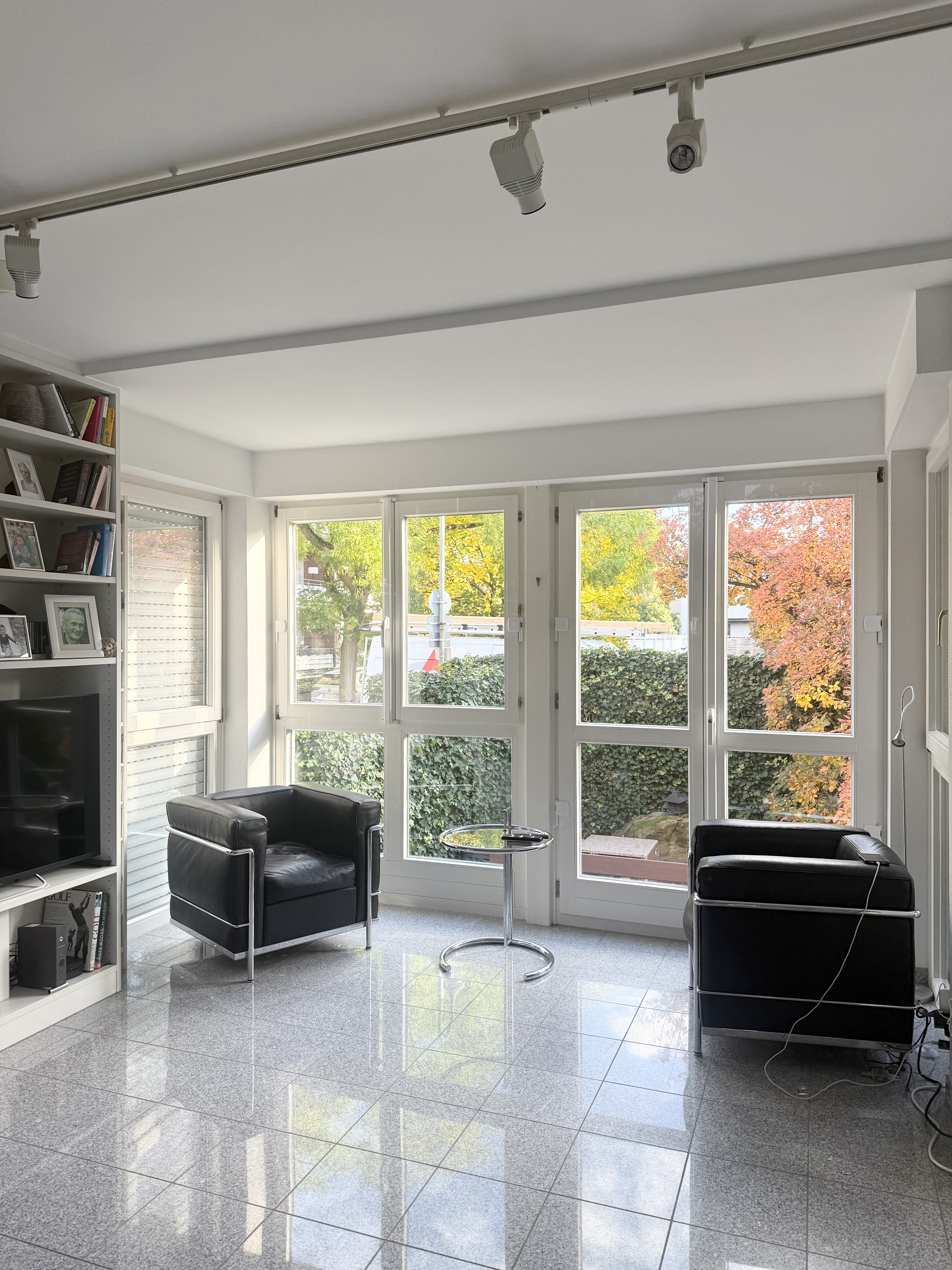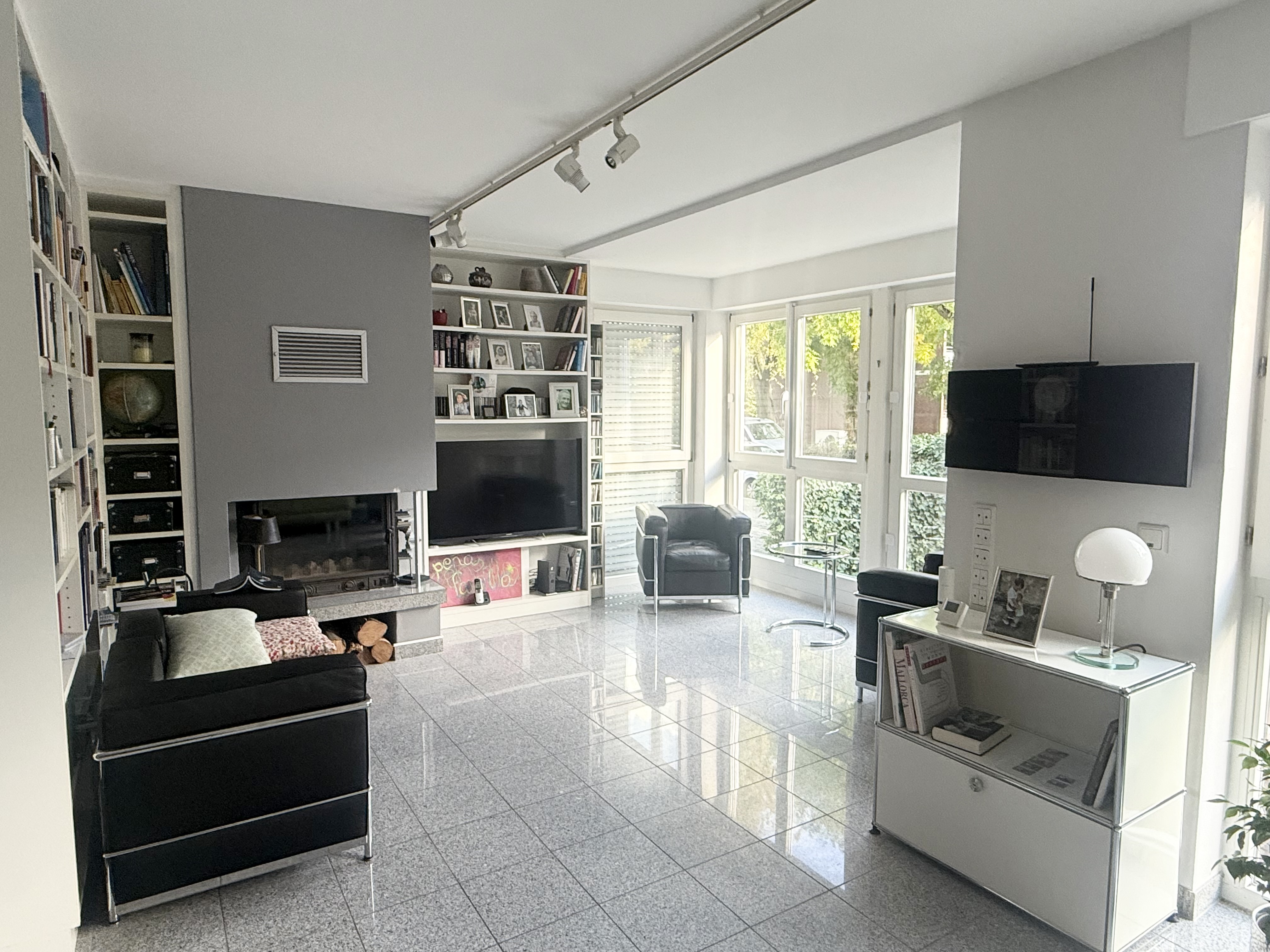 Die zur Zeit vom Eigentümer genutze Erdgeschosswohnung bietet einen großzügigen, lichtdurchfluteten Wohn- und Essbereich mit offen gestalteter Küche, Zugang zum Balkon sowie zum schön angelegten Gartengrundstück von ca. 290 m2 in West-Ausrichtung. Eine nach Süden ausgerichtete Terrasse vor dem Haus lädt zum Verweilen und Sonnen ein. Außerdem verfügt das EG über ein Schlafzimmer mit Bad en Suite (Dusche) und ein separates Gäste-WC. Ein zusätzlicher Kamin sorgt für eine behagliche Atmosphäre und gemütliche Wohlfühlmomente.